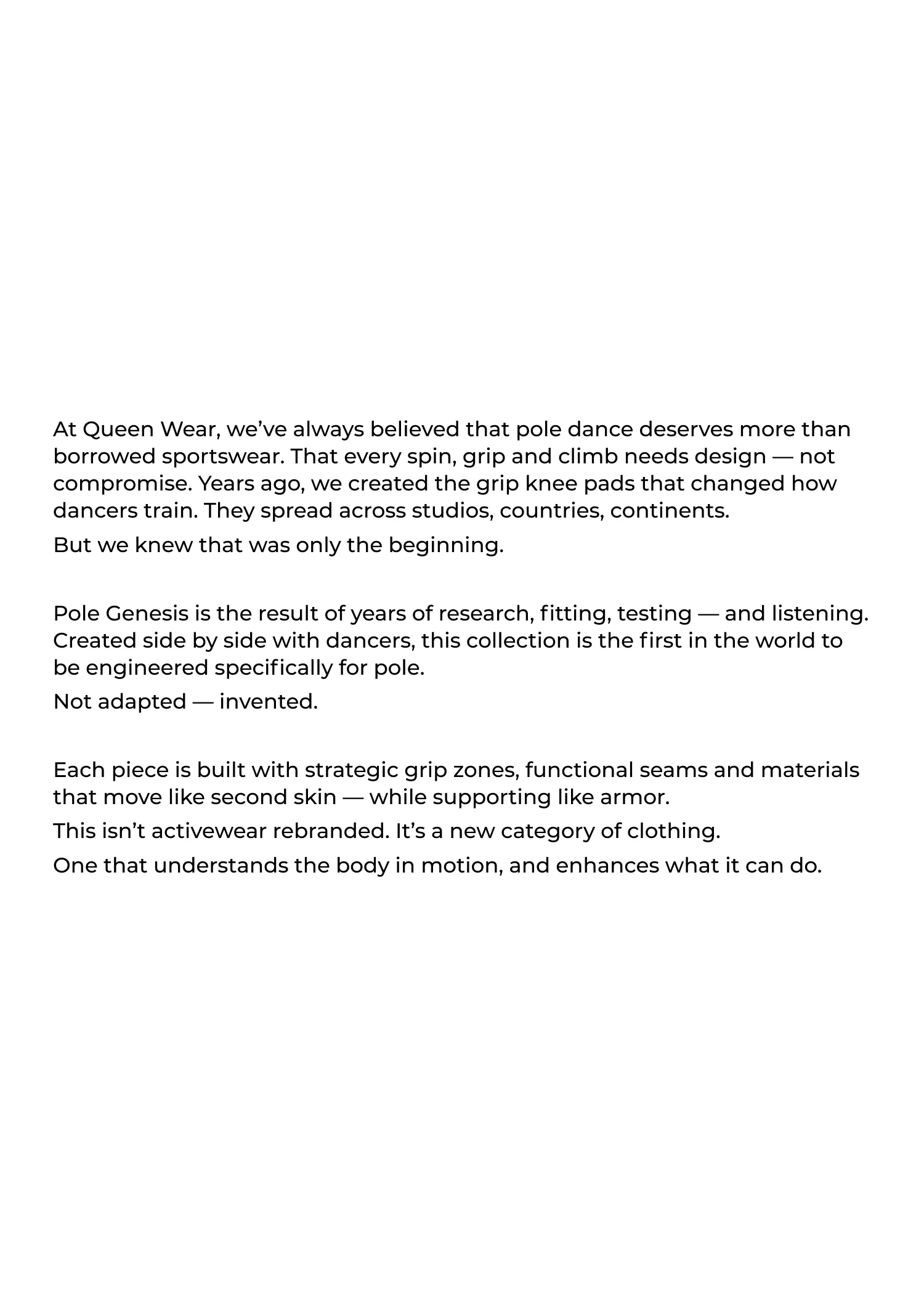 For the first time ever, polewear was engineered from the inside out. Built on motion. Built with grip. Built with purpose.